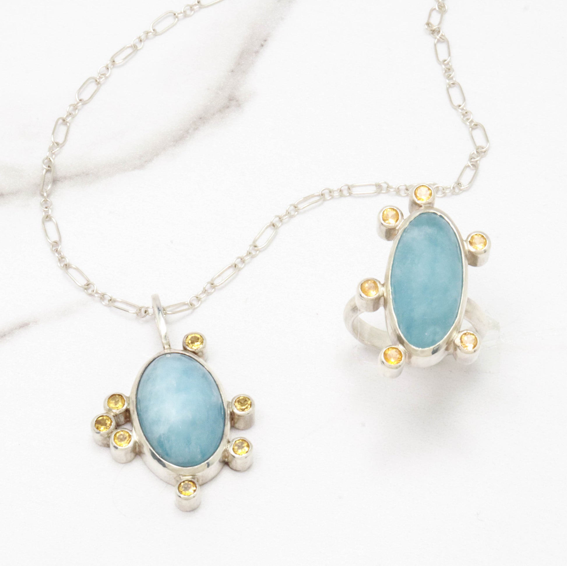 Aquamarine & Citrine Necklace and Ring set bundle.